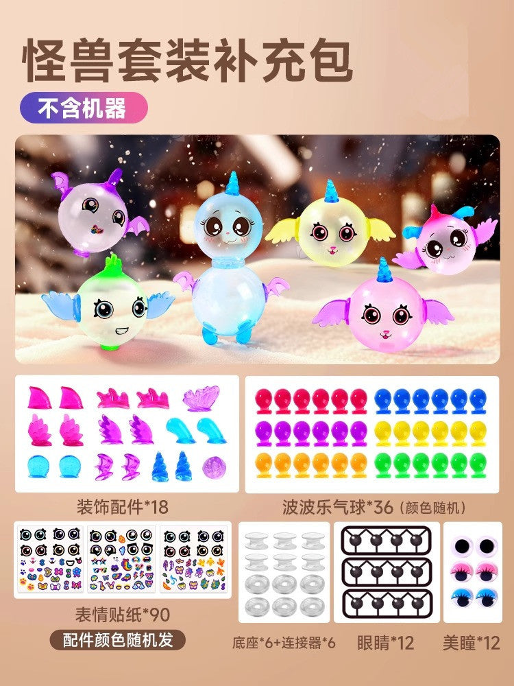 ŁATWY W UŻYCIU - Obsługa jest prosta: włóż bańkę, włóż klucz, przekręć komorę nadmuchiwania, wyjmij klucz, naciśnij, aby nadmuchać, a na koniec wyjmij kolorową bańkę. Nie jest potrzebna energia elektryczna, ponieważ ręczna pompka z łatwością nadmuchuje bańki. Ten praktyczny proces pozwala dzieciom cieszyć się tworzeniem bez potrzeby korzystania ze skomplikowanej maszynerii.