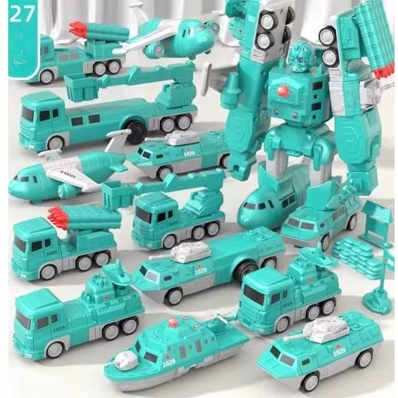 PRZEKSZTAŁCANIE PROJEKTU: Pojazdy w zestawie, takie jak ciężarówki, wózki widłowe, koparki itp., można łączyć w roboty, zapewniając niekończącą się zabawę i eksplorację.
