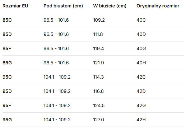TABELA ROZMIARÓW BIUSTONOSZY